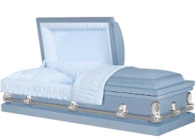 This traditional package offering includes your choice of the 18-gauge steel Springfield casket in London Blue, Orchid, Steel, Autumn Haze, or Ebony, or the Harris or Fredrick Poplar wood casket. These caskets are manufactured by Matthews Casket Company.